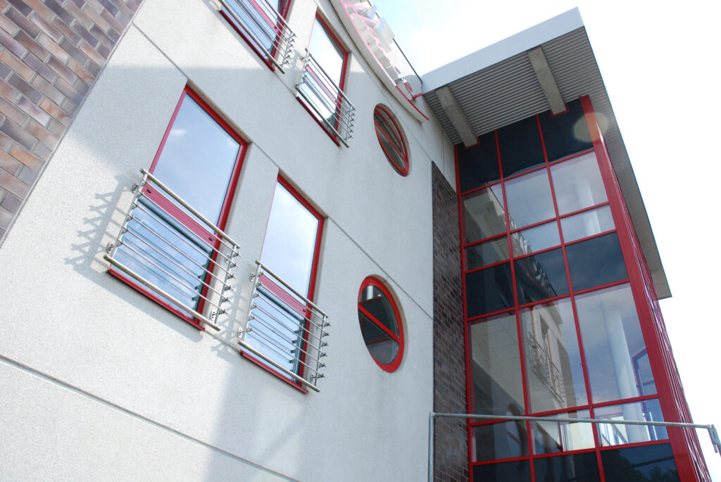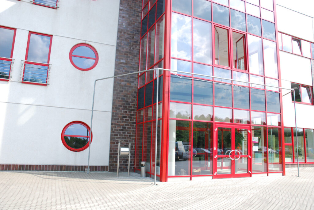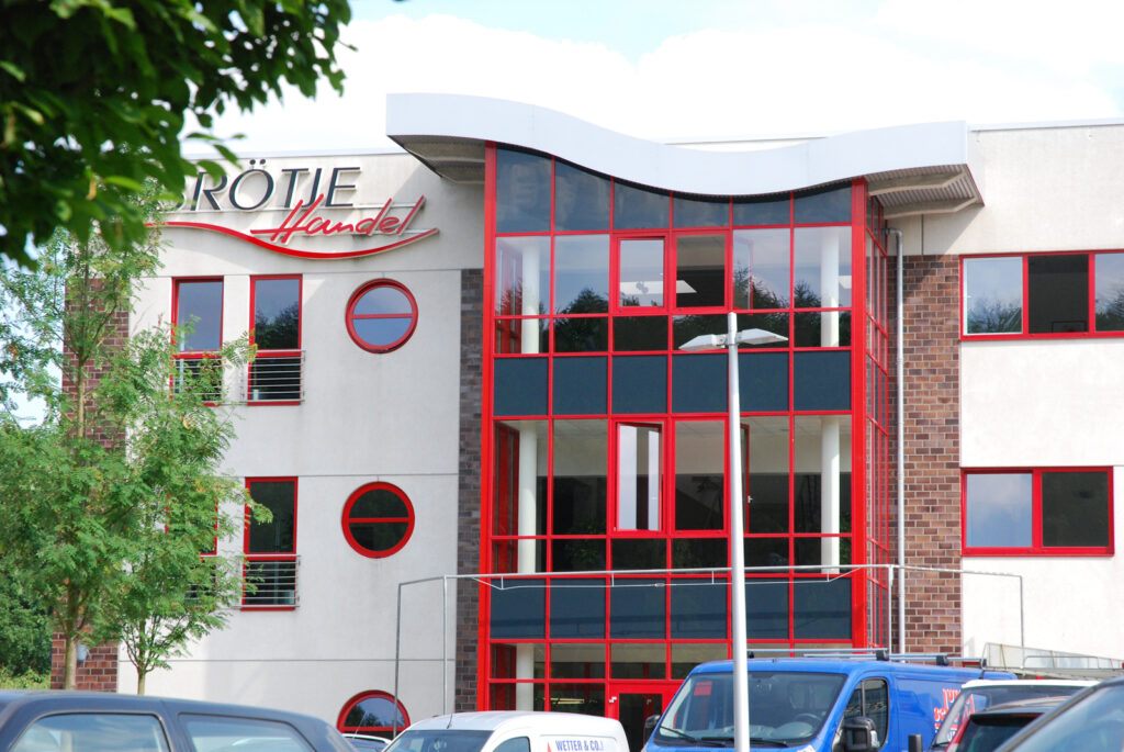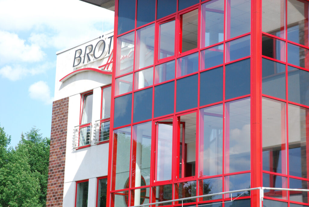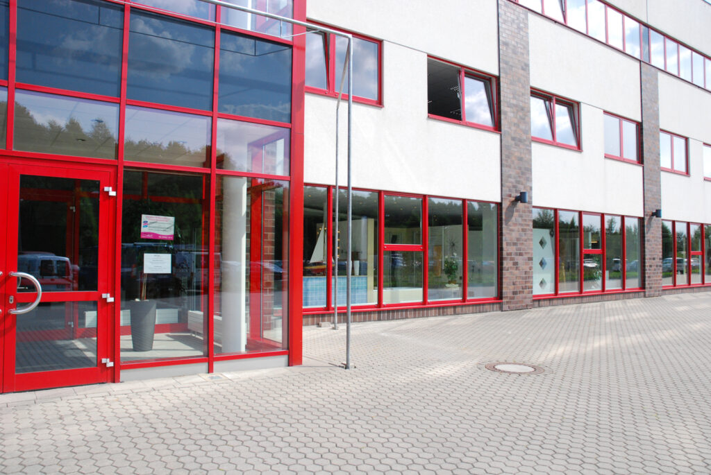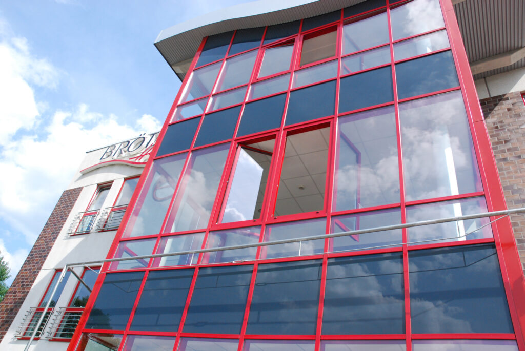 Bauvorhaben: Brötje Handel Standort Rastede Baujahr 2001 Ausgeführte Arbeiten Pfosten-Riegel-Fassade Eingangsanlagen Fenster Türen Schaufensteranlagen Brandschutztüren Windfanganlage Impressionen