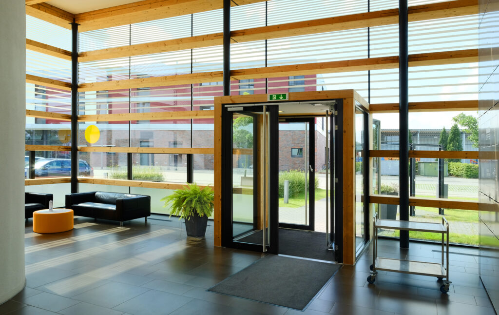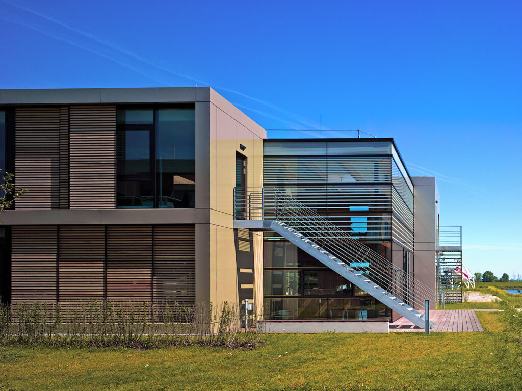 Bauvorhaben: Forschungs- und Entwicklungszentrum Standort Elsfleth Baujahr 2009 Ausgeführte Arbeiten Pfosten-Riegel-Fassade Gebogene Fenster Türen Fenster Brandschutztüren Schiebeläden Impressionen