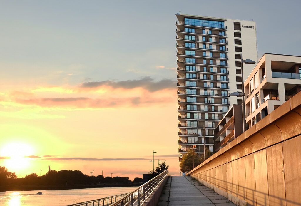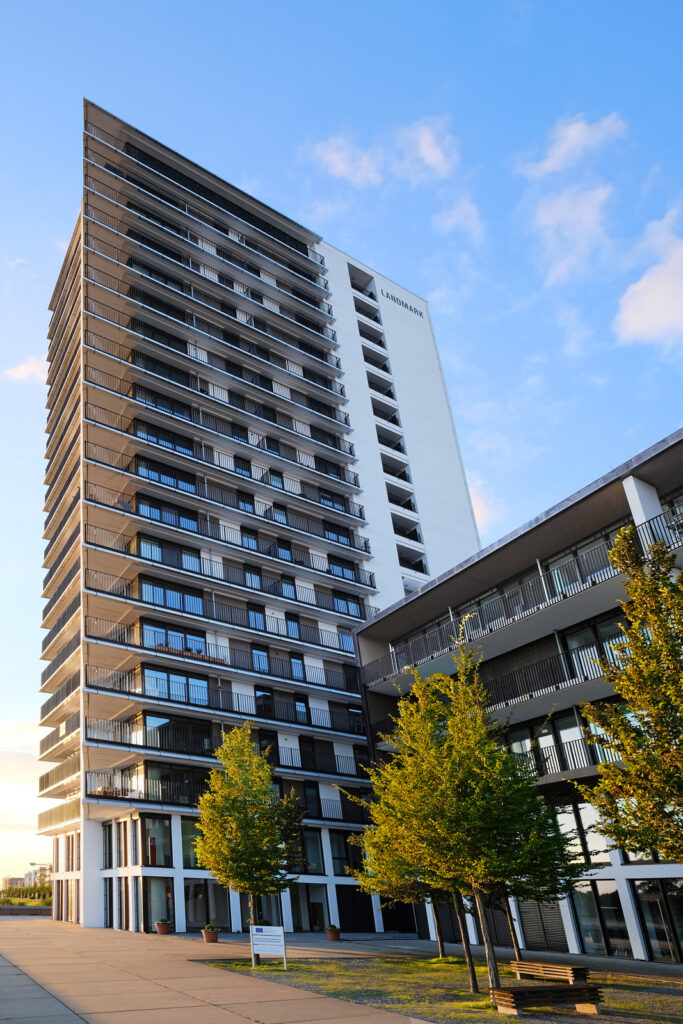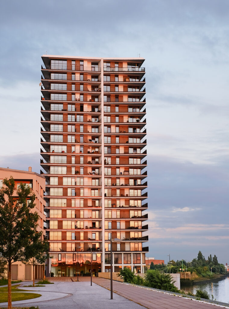Bauvorhaben: Landmark Tower Standort Bremen Baujahr 2010 Ausgeführte Arbeiten Gesamte Außenfassade Pfosten-Riegel-Fassade Eingangsanlage Fenster (Blocksystem) Terrassentüren Brandschutztüren Impressionen