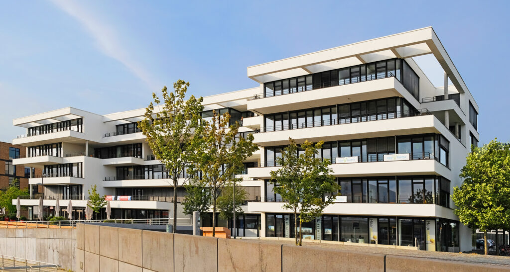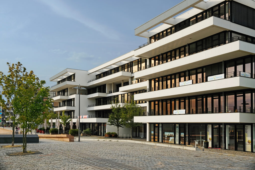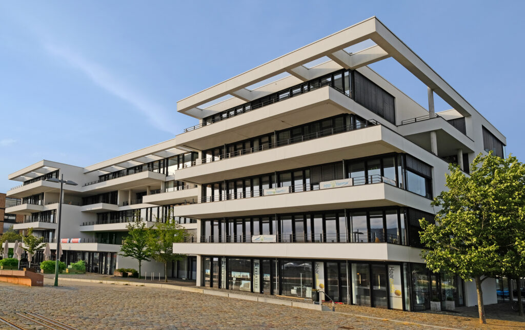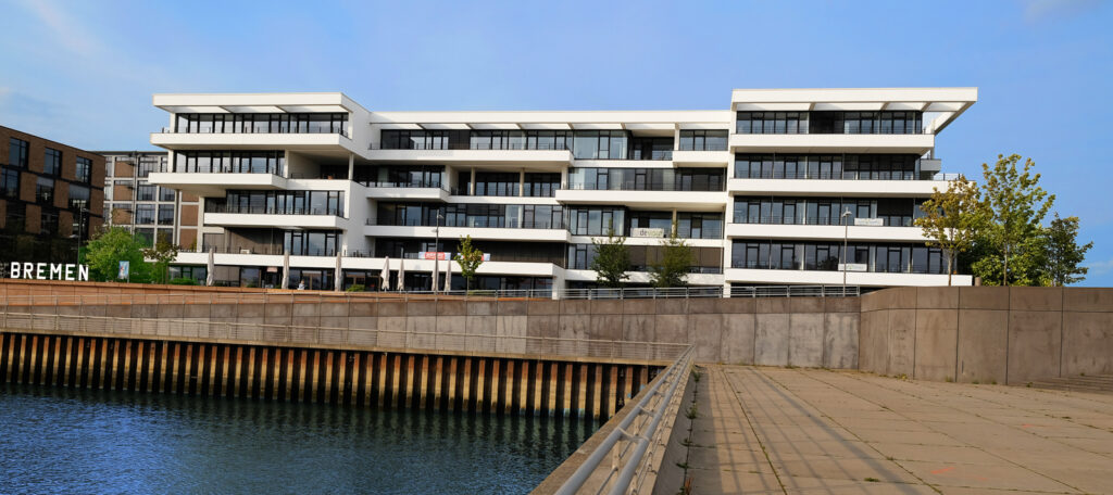 Bauvorhaben: Bürogebäude „Newport“ Standort Bremen Baujahr 2009 Ausgeführte Arbeiten Pfosten-Riegel-Fassade Eingangsanlage Fenster Brandschutztüren Französische Balkone Impressionen