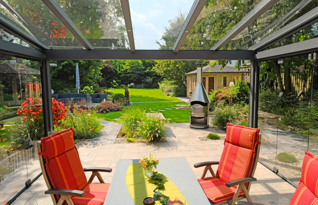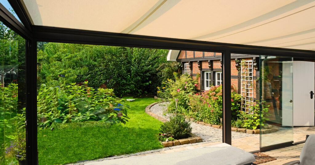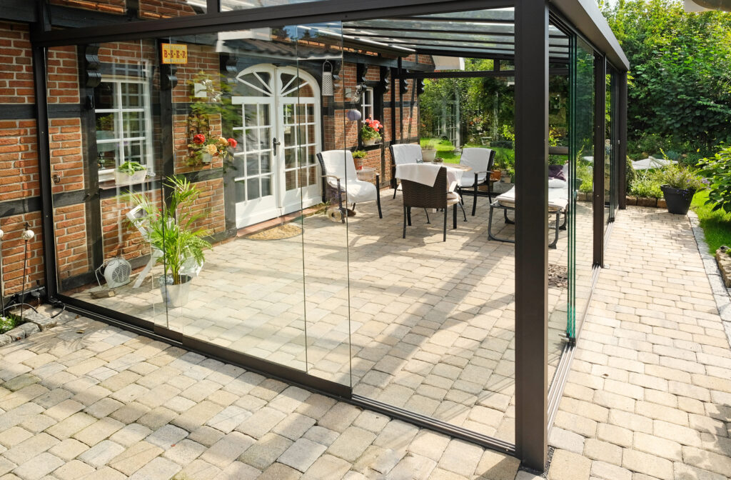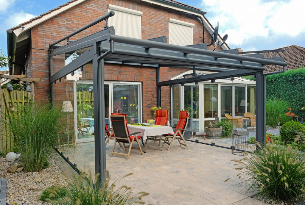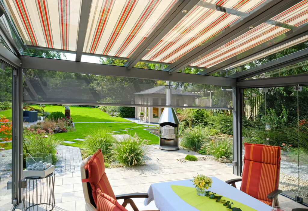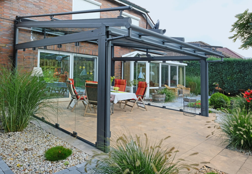 Bauvorhaben: Terrassenüberdachung Berne Standort Berne Baujahr 2015 Ausgeführte Arbeiten Aluminium-Terrassenüberdachung Falt-Schiebe-Anlagen Aufglasmarkise Senkrechtmarkise Impressionen